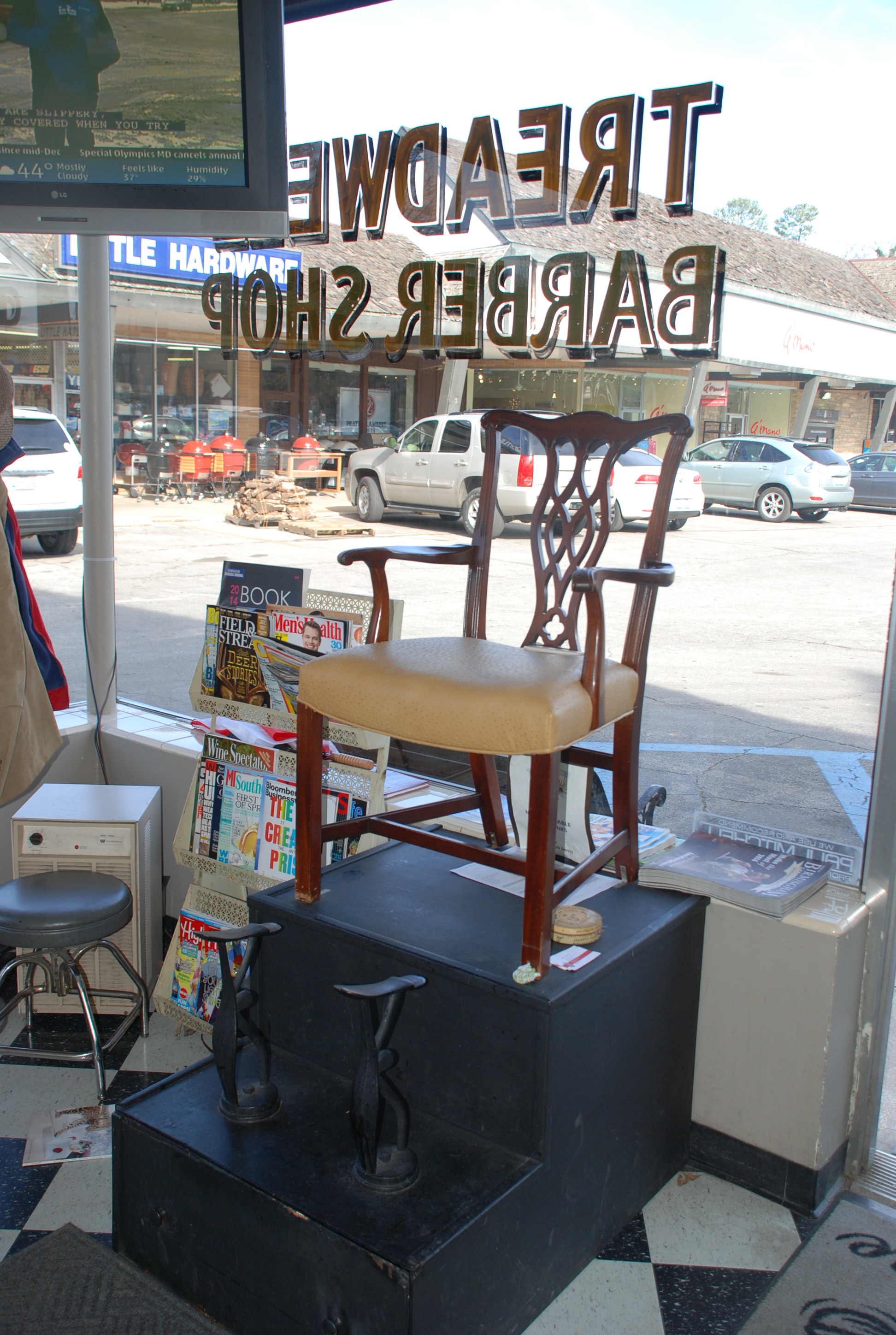 Oh boy. Treadwell Barber Shop was a throwback men’s barber shop. Actually, it wasn’t throwback; it was the real deal. It was the same thing it was when it opened in 1961. It had seven barber’s chairs all lined up in a row. Checkerboard tiled floor. Shoeshine stand.
